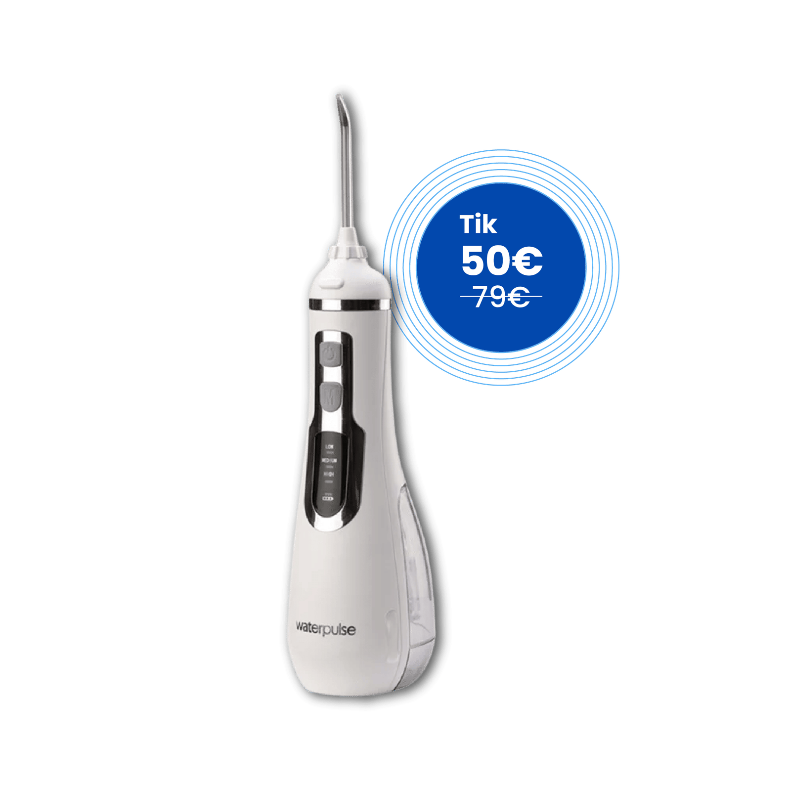 Tai modernaus dizaino ir puikios komplektacijos modelis. Šis irigatorius turi 3 vandens purškimo režimus, masažavimo funkciją, o komplekte – 4 skirtingus antgalius. Todėl šis irigatorius puikus pasirinkimas ne tik vienam žmogui, bet ir visai šeimai. Taip pat Waterpulse irigatorius lyginant su kitais esančiais rinkoje, yra greičiau pakraunamas. Per 4 valandas jį galima pilnai įkrauti, o pakrautu naudotis iki 4 savaičių.