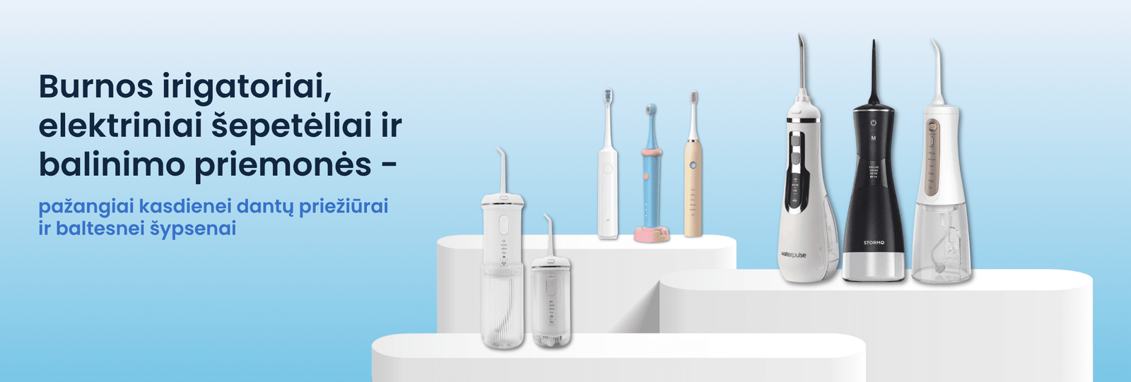 WeSmile siūlo modernius irigatorius ir elektrinius dantų šepetėlius, kurie padeda efektyviai pasirūpinti burnos higiena kasdien.