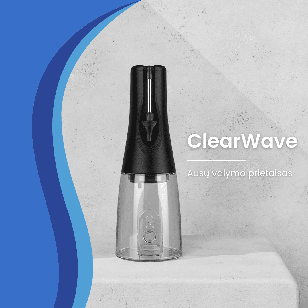 Ausų valymo prietaisas ClearWave sukurtas taip, kad būtų lengvas, patogus laikyti rankoje ir neužimtų daug vietos. Jo ergonomiškas korpusas ir sandari vandens talpa užtikrina saugų naudojimą bei transportavimą, o įkraunama baterija leidžia prietaisą naudoti tiek namuose, tiek kelionėje. Tai praktiškas sprendimas tiems, kurie vertina švarą, patogumą ir funkcionalumą viename.